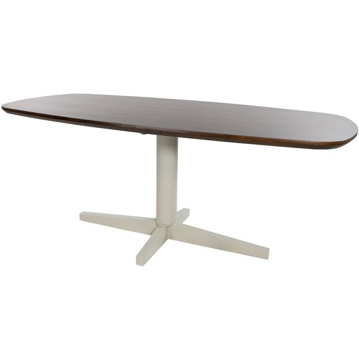 Eetkamertafel 240, deens ovaal, poot beige, mango bruin walnoot