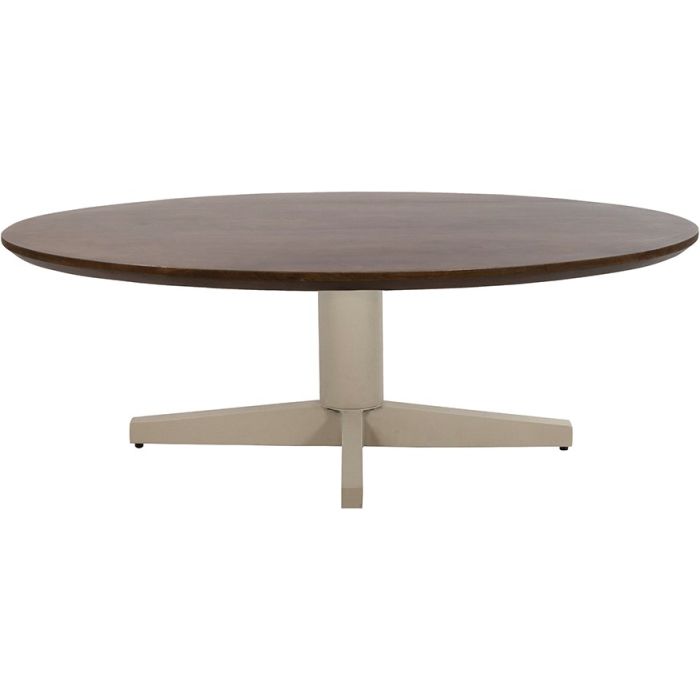 Salontafel 130, ovaal, poot beige, mango bruin walnoot